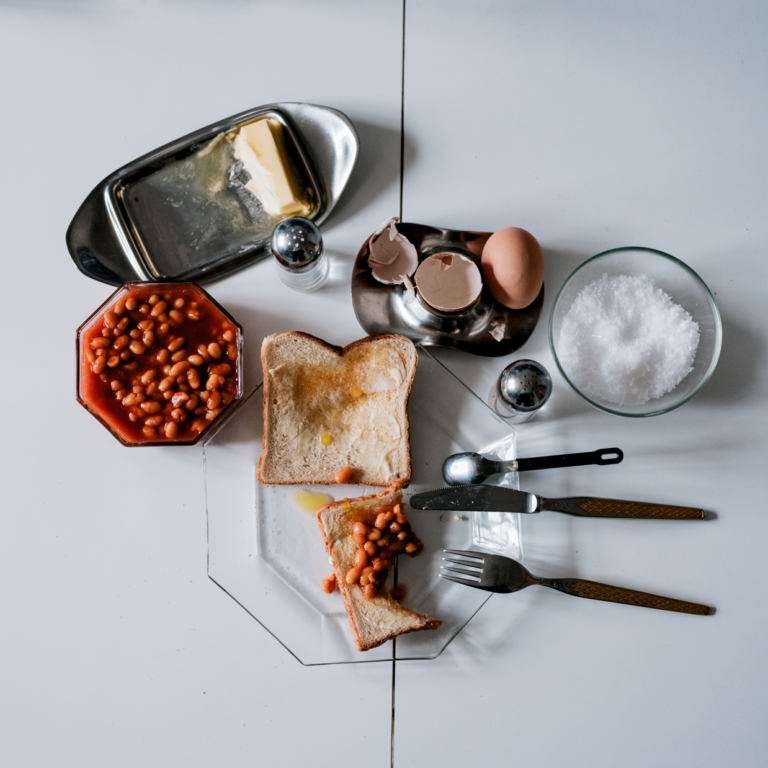 There was a week in September 2023 during which I obsessively took images of my breakfast because I was intrigued by how beautiful a simple egg on toast looked combined with my cutlery, my vintage WMF egg cup (by Wagenfeld), and my octagonal glass plate. I explored my breakfast and my other kitchen utensils further, and while doing so, I made a sequence of a meal that was inspired by a traditional English breakfast. Connoisseurs will easily see that I missed a few important ingredients.